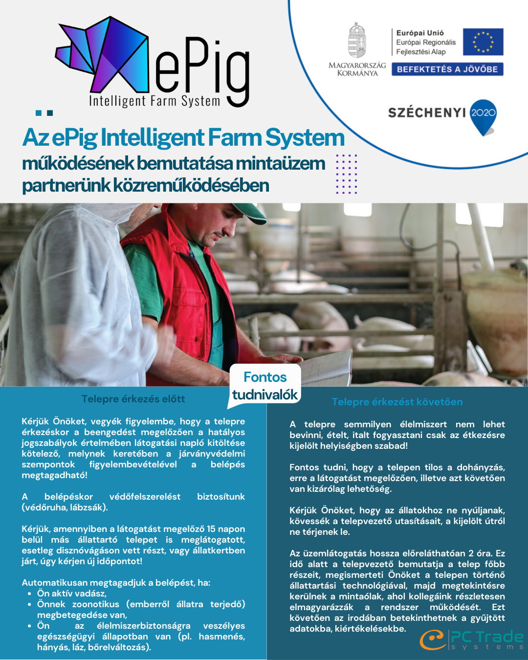 Az ePig Intelligent Farm System működését a PC Trade Systems Kft. a Precizion 2009 Kft-vel együttműködésben egy valódi mintaüzemben mutatja be az érdeklődőknek.