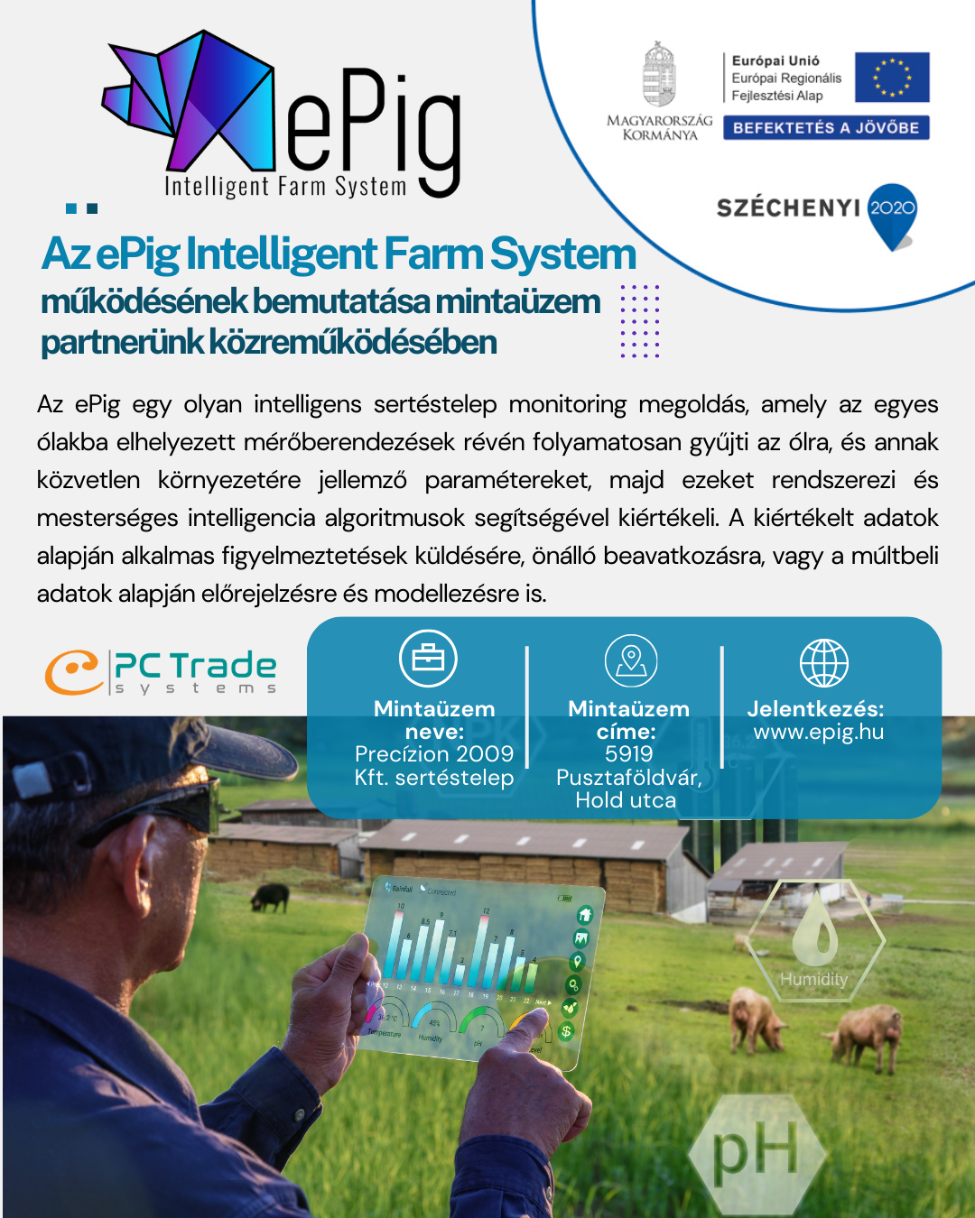 Az ePig Intelligent Farm System működését a PC Trade Systems Kft. a Precizion 2009 Kft-vel együttműködésben egy valódi mintaüzemben mutatja be az érdeklődőknek.